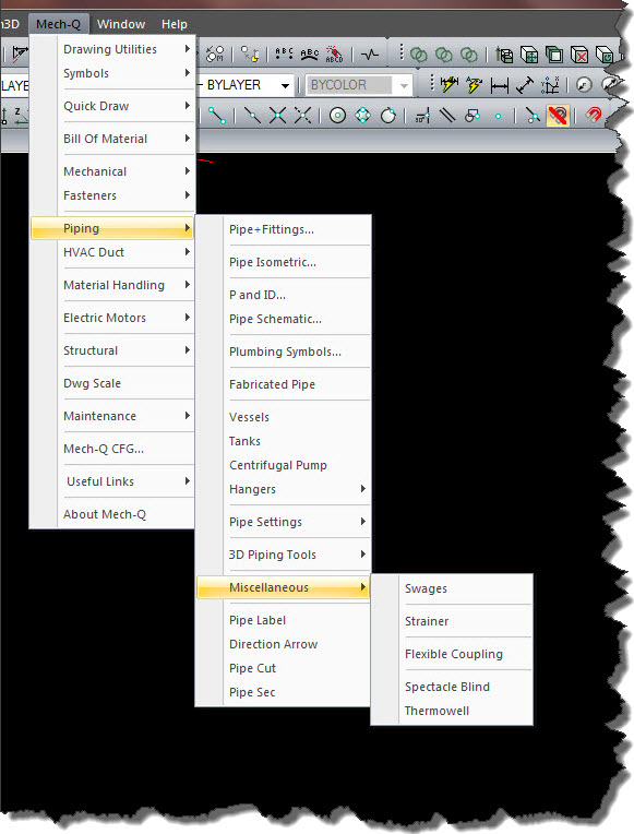 The Mech-Q "front-end" software is probably the right solution for you. The Mech-Q "front-end" software is the same software featured in the Real World CAD videos. The difference is you will be using Mech-Q software in a CAD engine you are already familiar with.  This means that you will be able to make all of the pipes, pumps, plumbing, duct, structural steel, bolts, nuts, washers, tanks and their respective fittings shown in the Real World CAD videos with your existing CAD software. Items that were not made by the Mech-Q "front-end" software such as plumbing fixtures, toilet carriers, pipe hangers, boiler housings, ceiling grids and concrete structures might be supported by your CAD engine's the built-in tools.  All of the tools in the Piping Extra tool bar were designed and tested by us here at Real World CAD.net primarily for the mechanical detailing trade and are included in the Mech-Q software package. In short, if you saw it in our videos, it was made with the Mech-Q "front-end" software.  The only difference is we used the ProgeCAD software engine (AViCAD is the ProgeCAD bundled with Mech-Q).